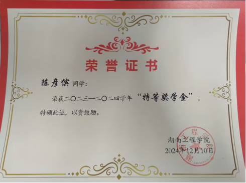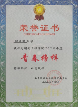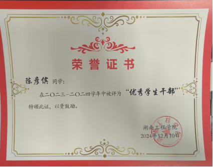 在思想建设方面,作为中共党员,陈彦傧同学坚定信仰,忠诚于党,积极参与班级团支部和院党务中心的建设工作,带领班级团支部荣获“五四红旗团支部”荣誉,并连续三年获评“优秀共青团员”。作为学生代表参与校级学代会、团代会等活动,展现出色的组织和领导能力。