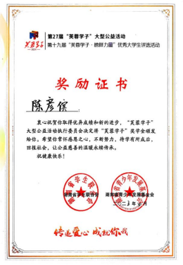 笃行志愿,青春筑梦——陈彦傧的责任与奉献